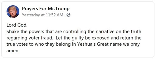 2020: [7:25] – Trump team lawyer Sidney Powell says the campaign will be able to present their claims in court in the “next two weeks.”