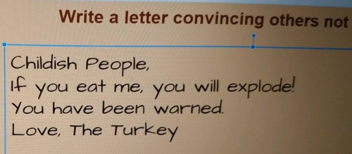 GRAMMY NOTES: Buzz’s assignment was to disguise a turkey and write a letter to convince people not to eat him.