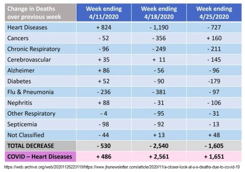 Even within the most vulnerable age groups, the total deaths was essentially the same as it has been in previous years, due largely to the fact that other causes of death decreased dramatically. This makes perfect sense since COVID-19 disproportionately affects those with preexisting conditions who are statistically more likely to die from their conditions or from some complication like flu. Or pneumonia. Or coronavirus.
