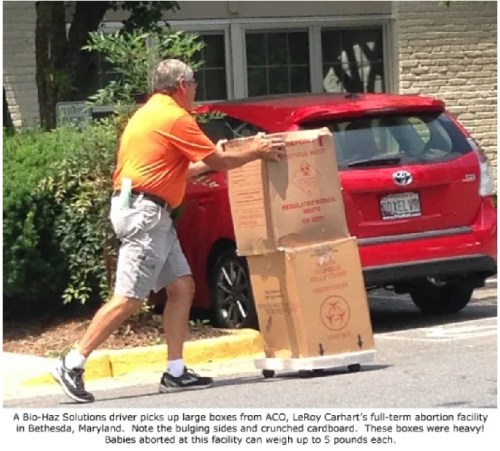 Sources have told Operation Rescue that Carhart stores it all, sometimes stored in leaky cardboard boxes that are stacked up in an unrefrigerated janitorial closet