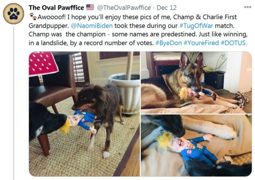 BIDEN: Joe “I’m a devout Catholic” Biden demonstrates how he puts his faith into action with a “First Dogs Champ & Major Biden” Instagram account postings. He’s really taking the high road on that Mean Tweeter he allegedly “beat” with a statistically impossible number of votes.