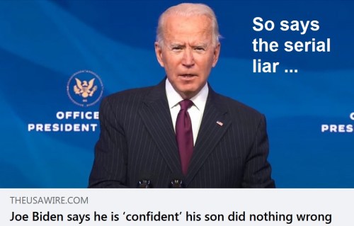 HUNTER: Prior to Joe Biden’s expression of confidence in his son’s lily white innocence, he spent a week dodging reporters asking him about it. I guess he had to wait until his handlers told him what he thinks.