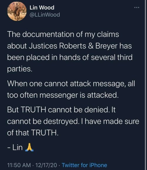 SCOTUS: Pray for Lin Wood and for the integrity of our Supreme Court. They have far too much power to be putting partisan politics over the Constitution.