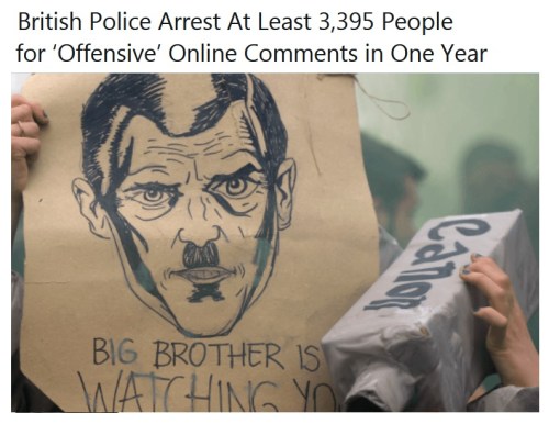 - https://www.breitbart.com/europe/2017/10/14/british-police-arrest-at-least-3395-people-for-offensive-online-comments-one-year/