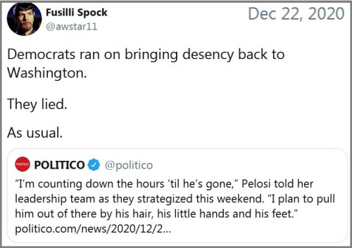 CRUMBS: House Speaker Pelosi spent months stalling the pandemic relief bill lest President Trump get any credit for it. Now, she’s calling $600 stimulus payments “significant.” Back in 2018, she called the $1,000 worker bonuses that resulted from Republican tax cuts “pathetic” “insignificant” “crumbs.”
