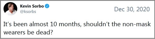 COVID-19: The Los Angeles Times reports that between 20% and 50% of frontline health workers have refused the vaccine.