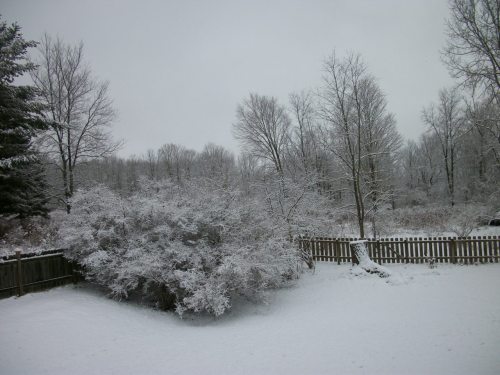 GRAMMY NOTES: Yesterday, we had that lovely, soft kind of snow fall that looks like angels are sifting confectioner’s sugar on the world. The sun isn’t out yet today, so it is still all fluffy and beautiful, lining each twig and piled on each fence post.