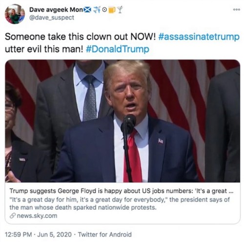 Other evidence of Twitter’s massive hypocrisy is not hard to find. For example, they have not shut down these hashtags – #KillTrump, #ArrestTrump, #AssassinateTrump. They also allow several Antifa Twitter accounts to continue functioning, despite clear evidence that they have been used to organize riots.