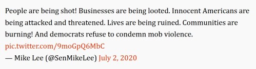 After a man in Utah was mobbed, then shot by a group of rioters, Sen. Mike Lee (R-Utah) introduced a non-binding resolution in support of peaceful protest and law enforcement officers who do their jobs well, while condemning violence and the desecration of monuments across the country.