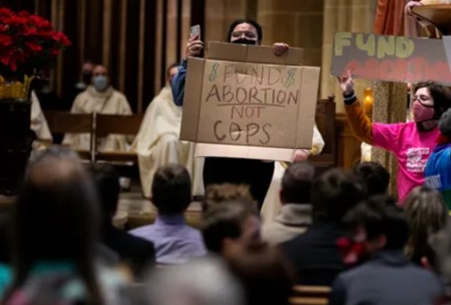 ABORTION: Eight pro-abortion activists pushed into a Respect Life Mass at St. Joseph Cathedral in Columbus, Ohio. After they paraded through the sanctuary chanting, “Two, four, six, eight, this church teaches hate.“