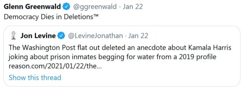 GLENN GREENWALD: Dan Bongino says Glenn Greenwald is one of the few actual journalists still reporting. He’s a Leftie, so it was easy for him to hate on Trump for the past 5 years. Now he’s got to watch his profession succumb to halo polishing FAUXTUS. He recently tweeted this lament …
