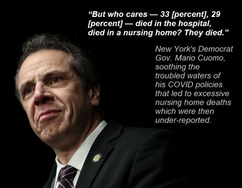 NEW YORK: CLICK https://www.facebook.com/whitehousebrief/videos/891323264973576 [4:38] if you have any interest in hearing Gov. Nipple Rings whining about how unfair it is that he’s being criticized over nursing home deaths. And after he went and wrote a whole book about how awesomely awesome his coronavirus leadership was/is/will be forever and ever amen.