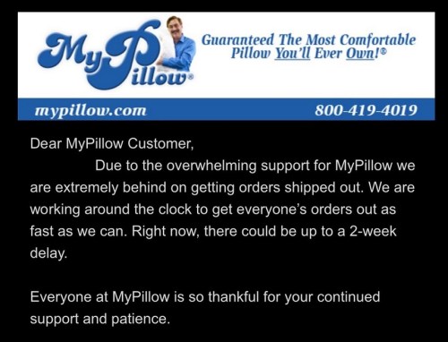 MYPILLOW: Cheering for our support of My Pillow CEO Mike Lindell who refuses to cave to Leftist threats.