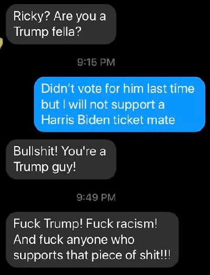TOLERANCE: I dunno who posted the text exchange in the graphic, but the screed below was posted on Facebook by a Rome, NY, elementary school teacher.