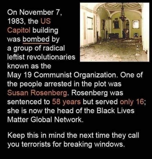 I guess the fact that she was imprisoned, not for her political beliefs, but for acting on those beliefs with extreme violence. It doesn’t sound like she’s changed her tune much, since she is currently vice chair of the board of directors of Thousand Currents, a non-profit foundation that sponsors the fundraising and does administrative work for the Black Lives Matter global network.