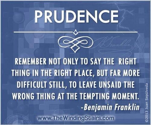 PRUDENCE: “Prudence is a moral virtue which gives us the correct knowledge of things to be done in particular cases. It resides in the practical intellect and gives the habitual disposition to know what is good and evil in the matter at hand. Prudence is the queen of the moral virtues and must govern all of our human acts. In order to make a prudential decision one must be aware of the past, understand the current situation, and have a concern for the future.” – LifeSiteNews