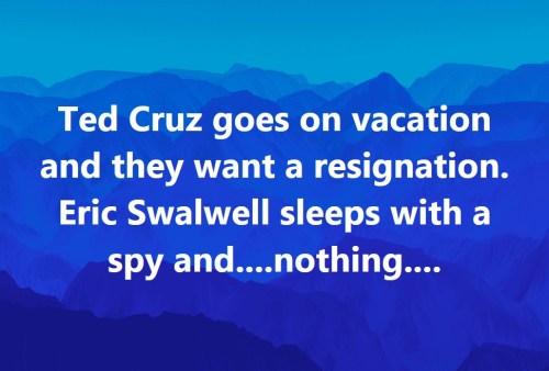 TED CRUZ: “Our house was dark. We had no heat. We were all huddled around the fireplace because it was the only heat in the house, and after a couple of days [of] the girls being really cold and [temperatures] being in the teens or the 20s outside, our girls said ‘Look, school has been canceled for the week. Can we take a trip and go somewhere warm?’ And Heidi and I, as parents, we said ‘OK, sure.’ And so last night I flew down with them to the beach and then I flew back this afternoon.”