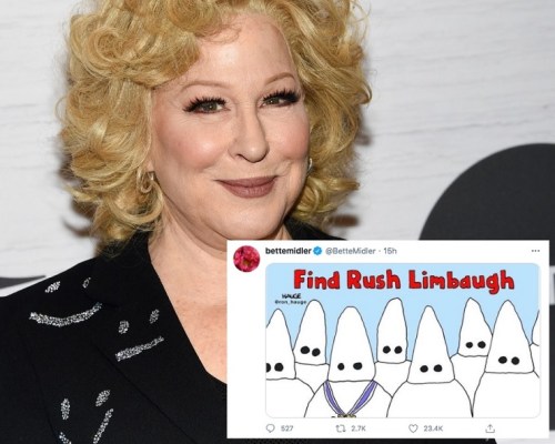 BETTE MIDLER: It’s sad how hateful and ignorant this woman is. All the people inside those white hoods were DEMOCRATS. Her nasty tweets have made it impossible for me to watch her movies.