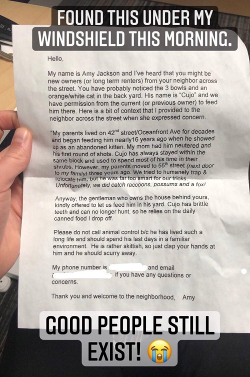 RANDOM ACTS OF KINDNESS: The note speaks for itself.
