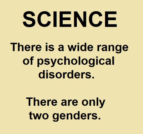 So this specialist in adolescent medicine – who apparently has no trouble identifying an eating disorder as something that needs to be fixed, not pandered to – has fully embraced the scientifically absurd position that some people are born (reincarnated) into the “wrong gender body.” That is not science. It’s religion.