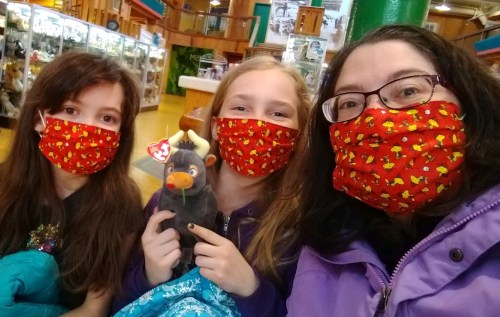 GRAMMY NOTES: Bunny, Blossom, and Mama Buzz enjoyed a Girls’ Day Out with Blossom’s mom, who is also Buzz’ Scout leader. She found that super cute Woodstock Scout fabric and made masks for everybody.