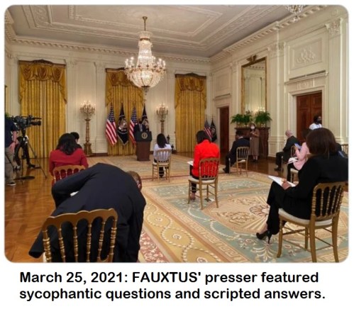 PRESSER: Mollie Hemingway described FAUXTUS’ March 25th presser as “easily the most painful presidential press conference I’ve ever seen” with “horrifically bad questions” from the “unspeakably horrific” and “corrupt … partisan media.”