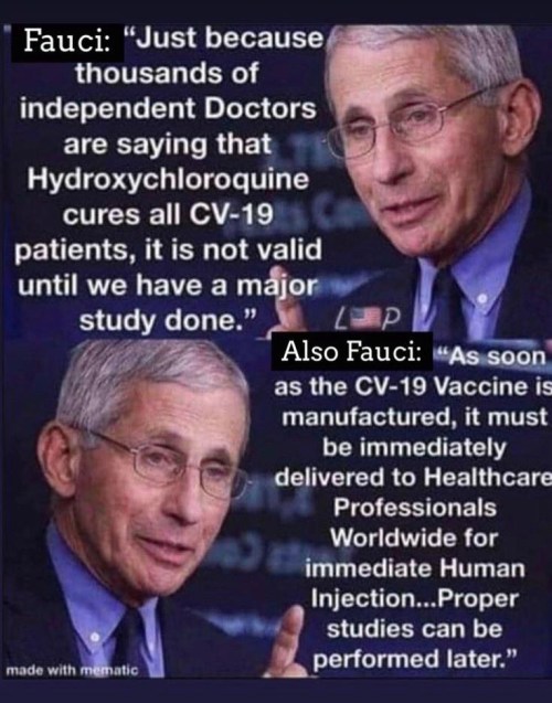 Fact Check informs me that Fauci didn’t actually say the words that are inside the quotation marks. Yup. That really makes ALL the difference. NOT.