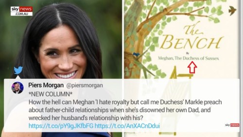 MEGHAN MARKLE: Piers Morgan compared Markle’s qualification for writing a children’s book about fathers to Bill and Melinda Gates publishing a hypothetical book titled “Why Marriage is for Keeps” the day after announcing they’re getting a divorce.