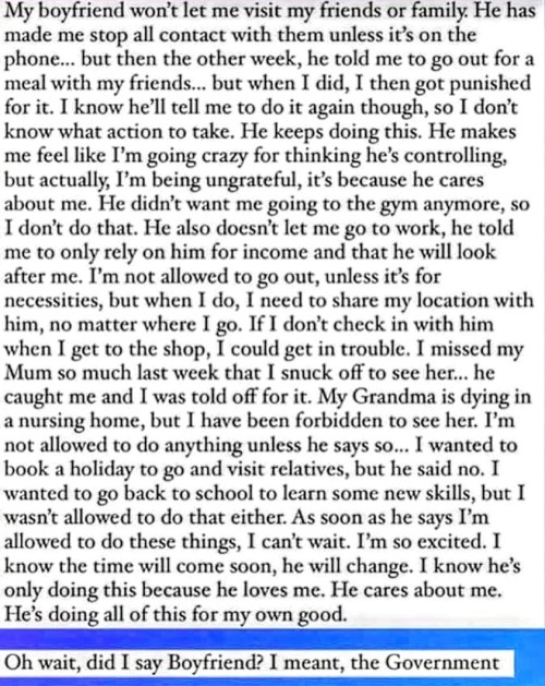 That boyfriend/government one is right on the money.
