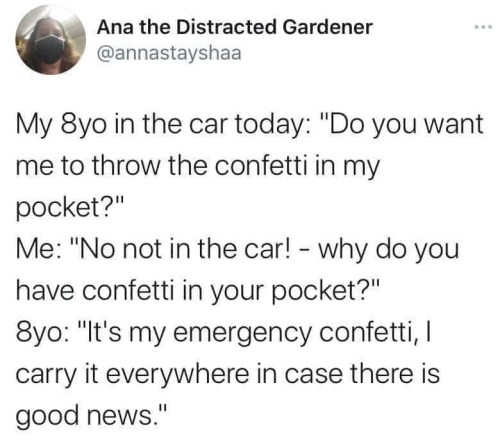 We occasionally got crap from people like said Math teacher for our parenting style, which my husband called The Sieve Method. Basically, our job was to sieve reality for them. When they’re newborns, we had to be like our water filter that doesn’t even work unless the water goes through it under pressure. As they got older, we reduced the sieve to coffee filter, strainer, colander, etc. until by 18 they would be ready to stand under the waterfall of reality without drowning.