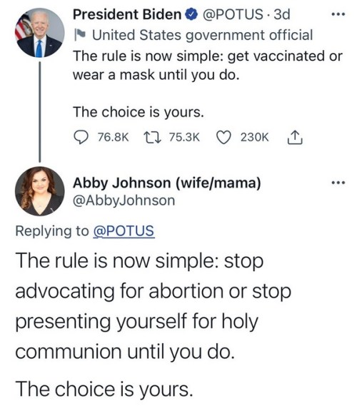 CATHOLIC: Bishop Hying (Madison, WI) tweeted, “Pelosi is ‘pleased’ with Vatican letter to U.S. bishops on Communion. So, in other words, Nancy, we bishops should just be quiet about your radical pro-abortion stance, as you facilitate the continuation of the murder of millions of unborn lives.”