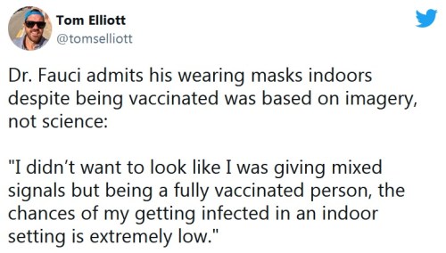 FAUCI: What a phoney this man is! Remember Sen. Rand Paul’s testimony where Fauci sneered at the idea that he didn’t actually need two masks when he was fully vaccinated? NOW he says, oh wait, that really was just theater. CLICK https://twitter.com/tomselliott/status/1372568301084286977 [6:27] to hear it again.