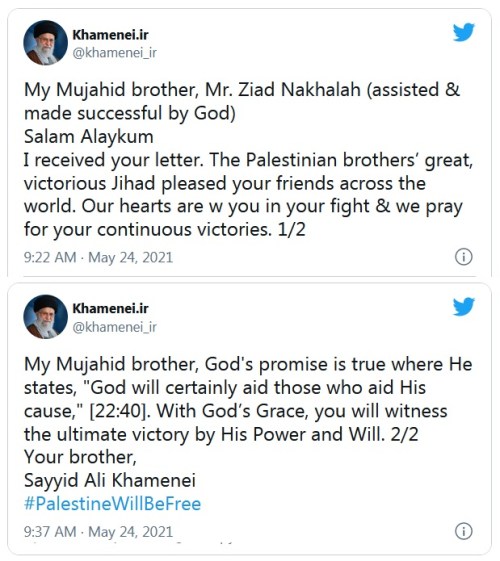 TWITTER: Jack Dorsey and his Arbiters of Truthiness banned President Trump permanently for posting too many tweets that violated their delicate Leftist sensibilities. These tweets by the Imam Sayyid Ali Khamenei, Iran’s Supreme Leader, celebrate the bombing of Israel and pray for its total destruction. They were posted yesterday and are still up today.