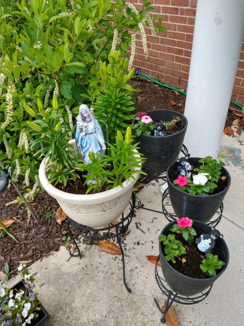 GRAMMY NOTES: Mama was in the yard recently when a new neighbor stopped and exclaimed, “Oh, I’ve been hoping to meet you. I’m Catholic too and I LOVE your Mary!”