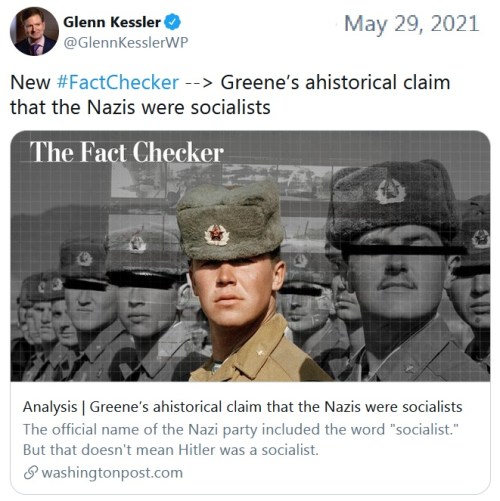 NAZIS: Washington Post Fake Checker sneered at Rep. Marjorie Taylor Greene’s statement that “Nazis were the National Socialist Party. Just like the Democrats are now a national socialist party.”