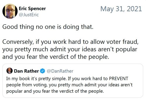 Dan Rather is such an imbecile. NO ONE is trying to prevent people from voting — we’re trying to prevent people from cheating.
