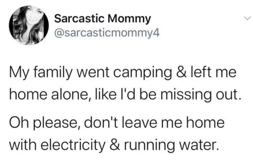 I mentioned to my infantry sil that I used to enjoy camping because it made me so grateful for indoor plumbing. He replied that he preferred to vacay in five star comfort, because “camping is too much like my day job.” LOLOL