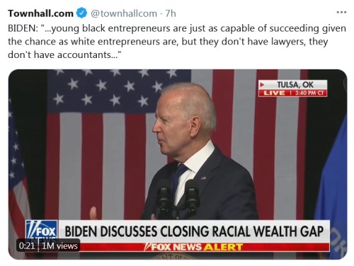 Now he tell us that Black business owners don’t have accountants and attorneys. I guess all those Black lawyers and accountants only work for White folks. Or something.