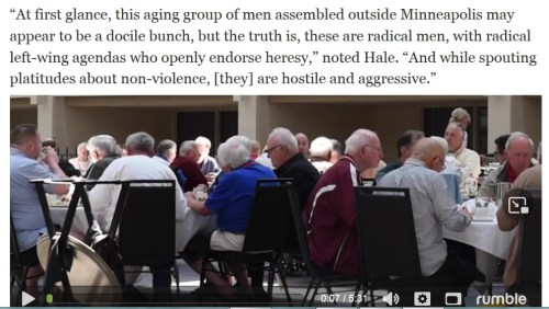 AUSCP: CLICK https://rumble.com/viy7hv-heretic-priests-meet-faithful-catholic-opposition-in-minneapolis.html [5:31] to see a LifeSiteNews report on the 10th annual meeting of the Association of United States [heretical] Catholic Priests. Outside the hotel, faithful Catholics prayed the Rosary in reparation for the scandalous clergy group.