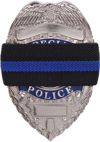The graphic shows one style of mourning band that cops put on their badges when one of their own is killed.