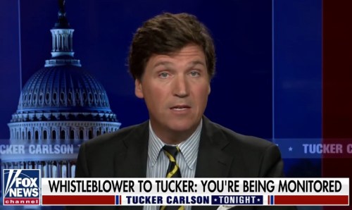 WAR ON TERROR: CLICK https://www.facebook.com/TuckerCarlsonTonight/videos/213688013826650 [4:44] to hear Tucker talk about how the NSA is spying on his show. The FAUXTUS administration wants to force him off the air.