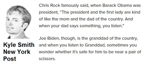 FAUXTUS: “I guess we’ll have to wait until the moment when Biden starts emitting a stream of actual gibberish, or answering the press using sock puppets, before our media acknowledge the obvious: Since our president isn’t fit to find his way home after dark, do we really believe he’s the one running the country?” – Kyle Smith