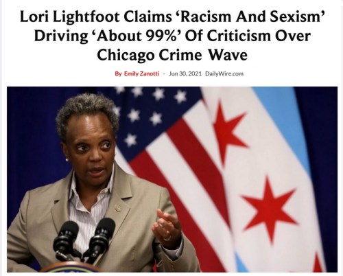 - https://www.dailywire.com/news/lori-lightfoot-claims-racism-and-sexism-driving-about-99-of-criticism-over-chicago-crime-wave