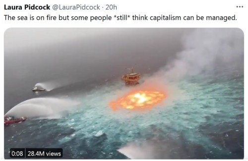 MEXICO: After a pipeline in the Gulf of Mexico’s Campeche Sound ruptured, causing a massive fire, self-described socialist Laura Pidcock tweeted the above.