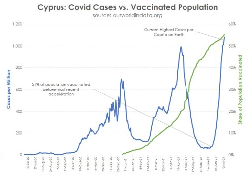 VAX: Dr. Robert Malone, a pioneer in the field of mRNA vaccines, shared a viral Twitter thread on Friday which lays out a disturbing trend; the most-vaccinated countries in the world are experiencing a surge in COVID-19 cases that the least-vaccinated countries are not. There are many, many graphs at the link confirming this.