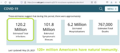 This issue is massively important for not just me, but the country. Why? Because the number of people with natural immunity is massive. Over 100M Americans have had COVID as of July 2021 (per CDC data). That’s nearly 1/3 of the nation.
