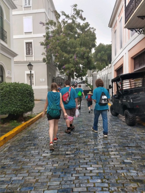 GRAMMY NOTES: At breakfast, Mama Buzz texted for prayers, because the news said they were going to get some heavy weather. At dinner, she texted, “What an awesome day! God was so gracious and we had occasional spats of rain but no thunder, lightning, or heavy wind so we spent the whole day in Old San Juan like we originally had hoped. Our first destination was San Juan Cathedral. We got to walk around and take pictures, then stayed for daily Mass. It was a beautiful service and at the end he blessed our troop.”
