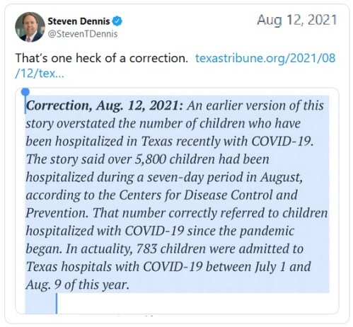 - https://www.foxnews.com/media/texas-tribune-erroneously-reports-5800-children-hospitalized-covid