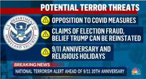 NBC SUCKS: CLICK https://rumble.com/vl6v06-insane-dhs-advisory-lists-opponents-to-covid-restrictions-as-terror-threats.html [:13] to hear NBC spew fake news about the latest terror advisory from the Department of Homeland Security. You can read the advisory for yourself at the link below.