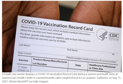 VAX: More than 3,000 fake COVID-19 vaccination cards were seized in Memphis, Tennessee, en route to other cities. They originated in China. Buying, selling, or using a counterfeit COVID-19 vaccination cards is a crime, and violators will face a fine and up to five years in prison.